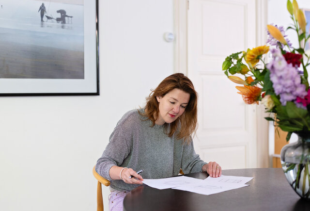Suzanne Petiet met bouwtekeningen